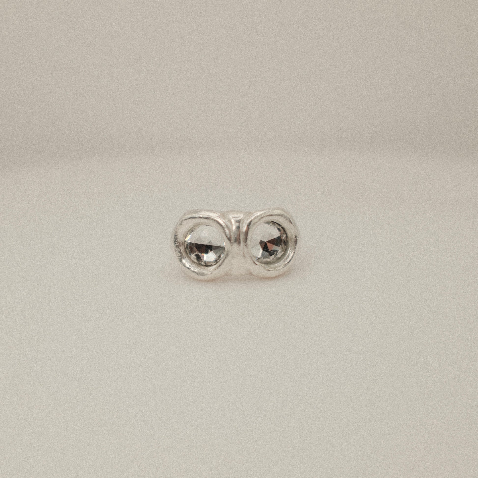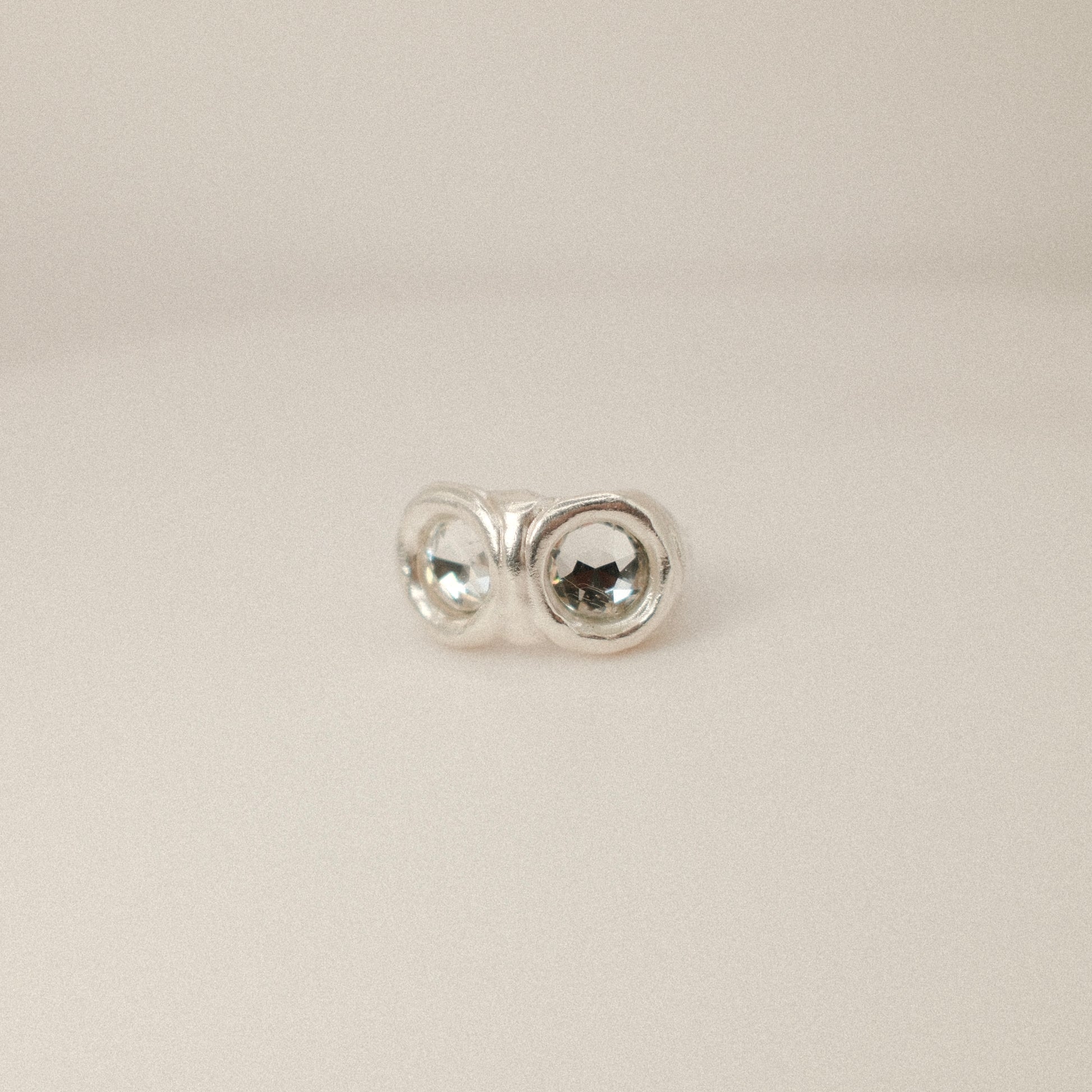 Anillo de plata 925 con doble piedra de Swarovski de 7 mm, acabado rústico.