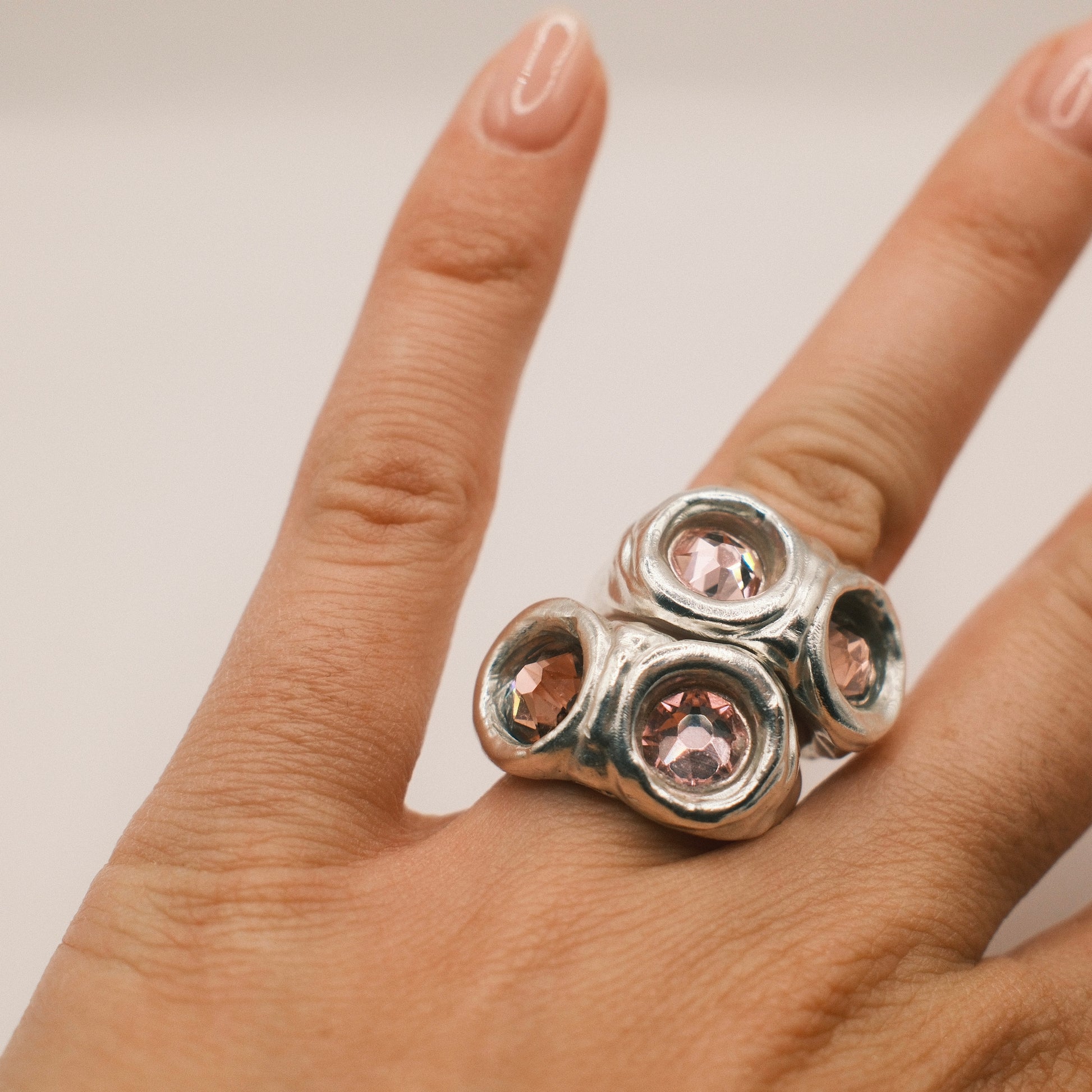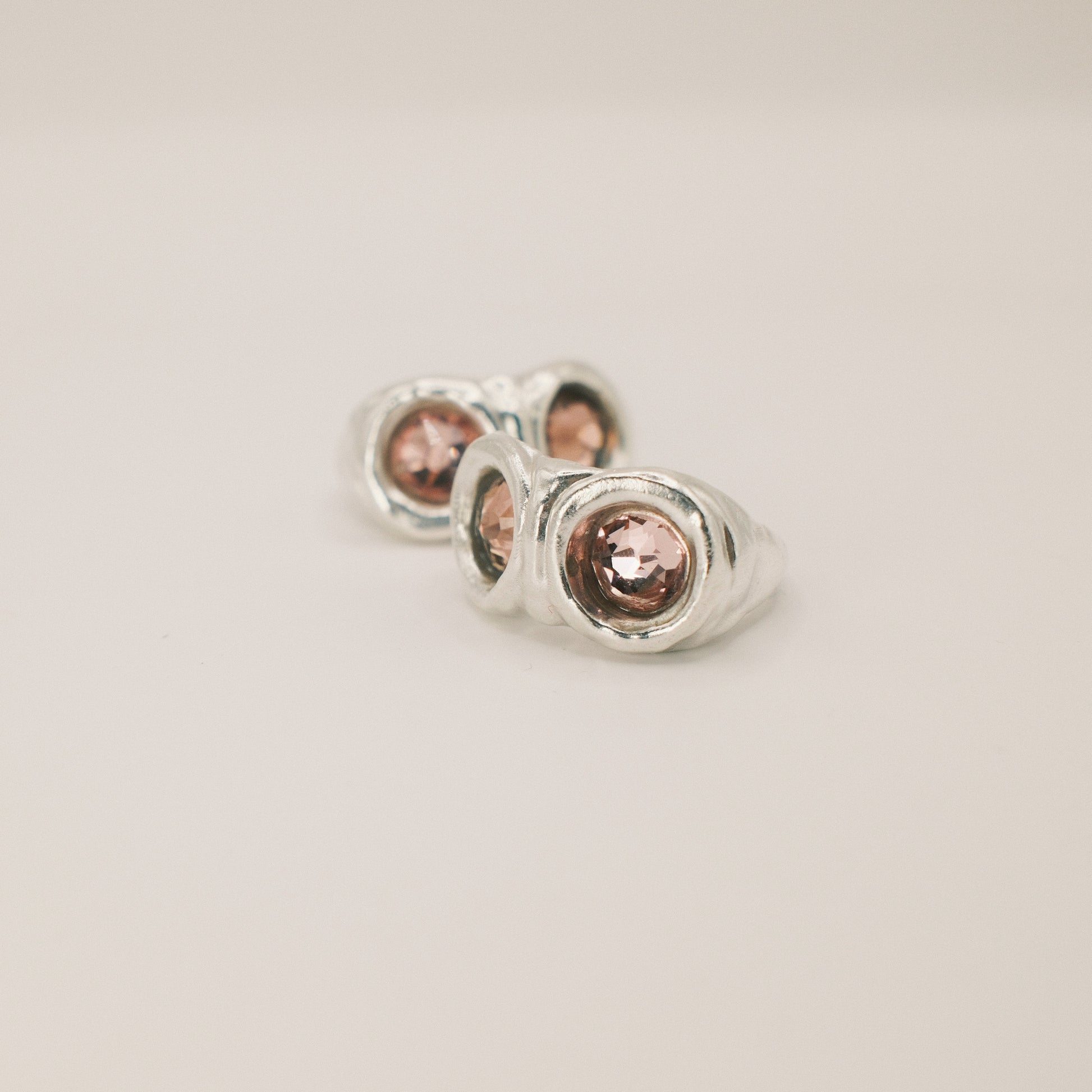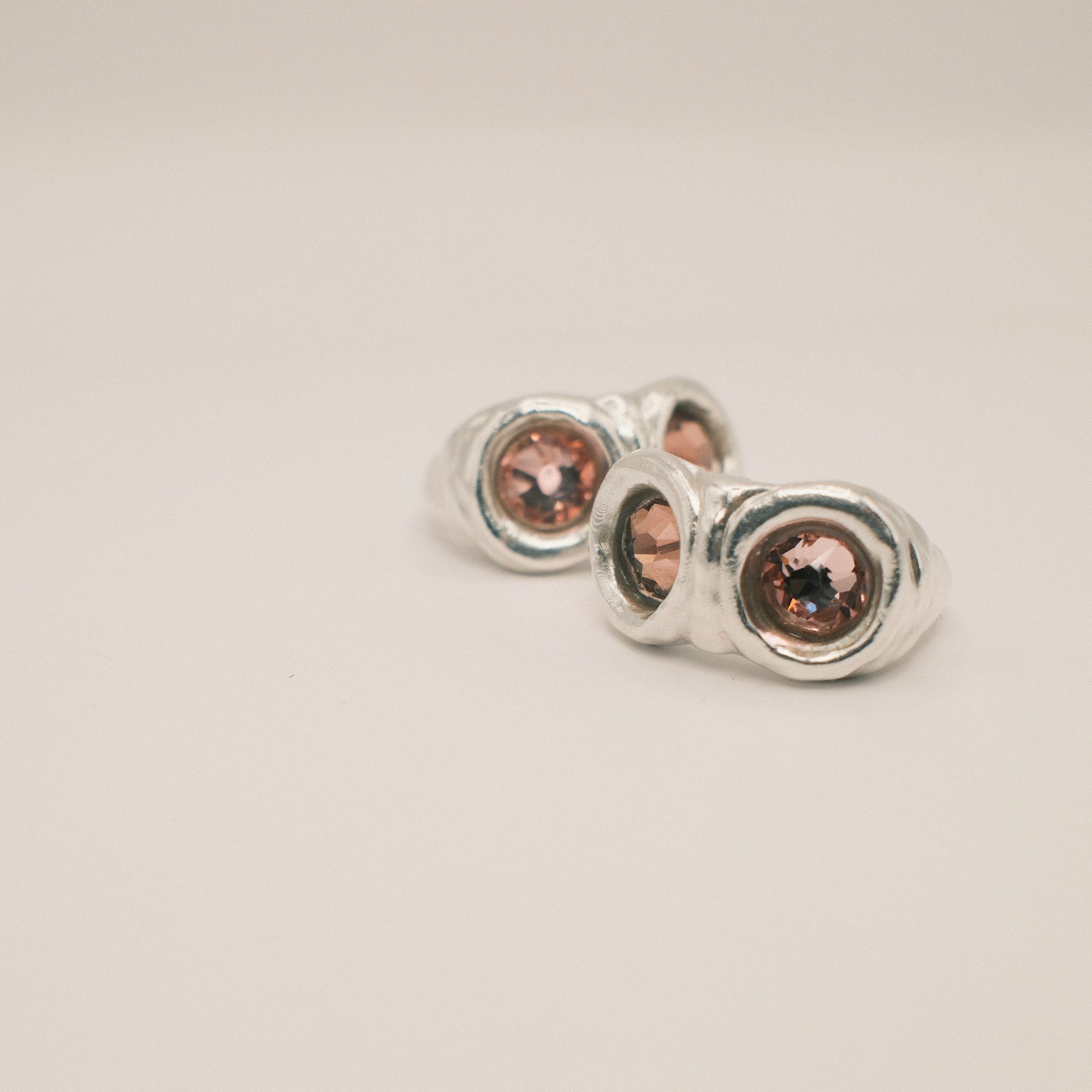 Anillo de plata 925 con doble piedra de Swarovski de 7 mm, acabado rústico.
