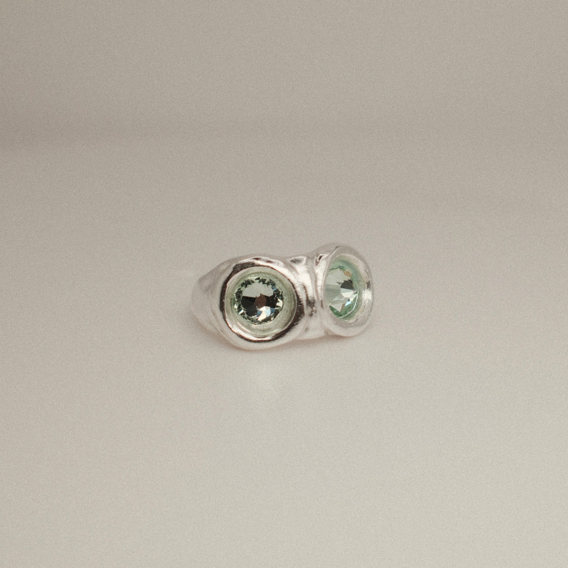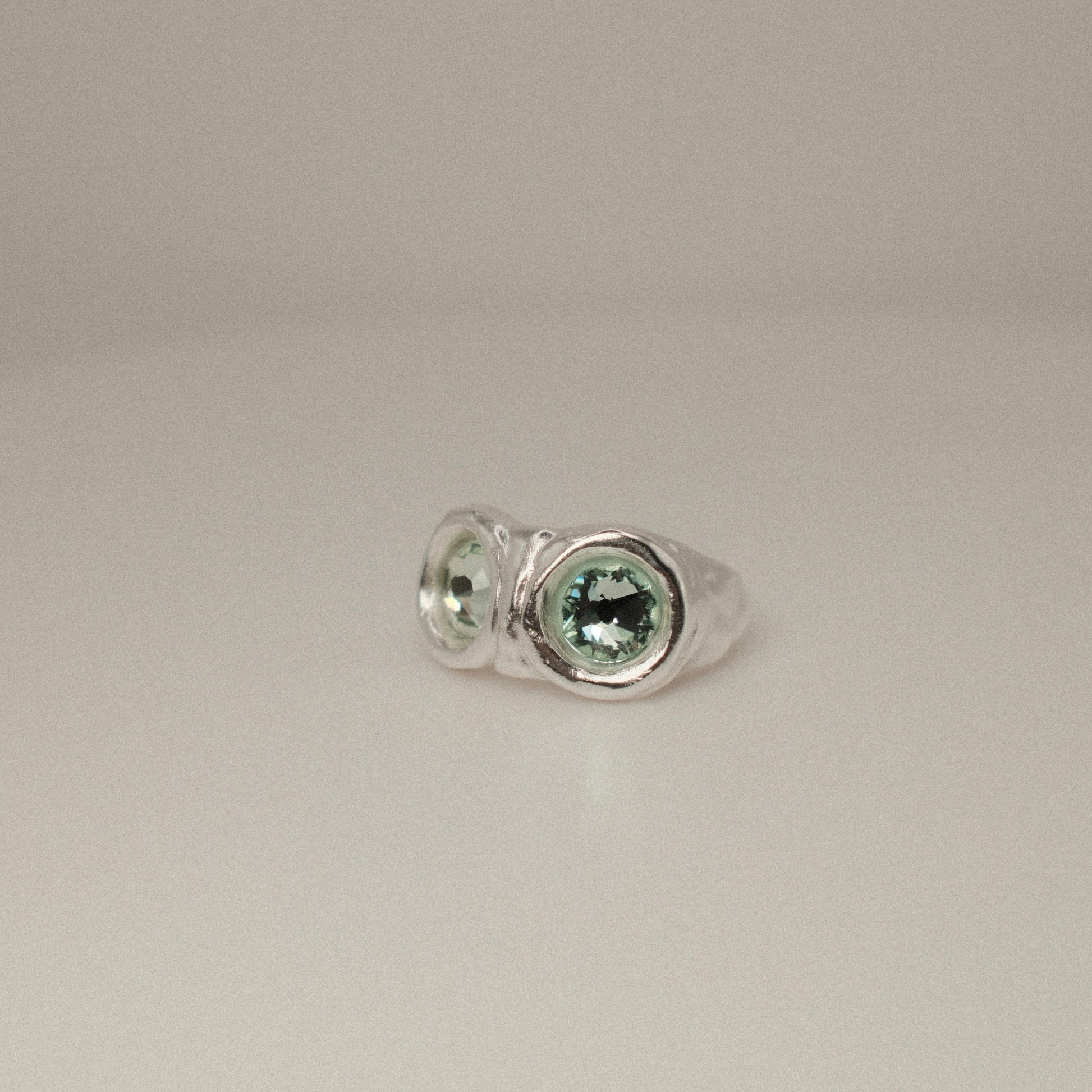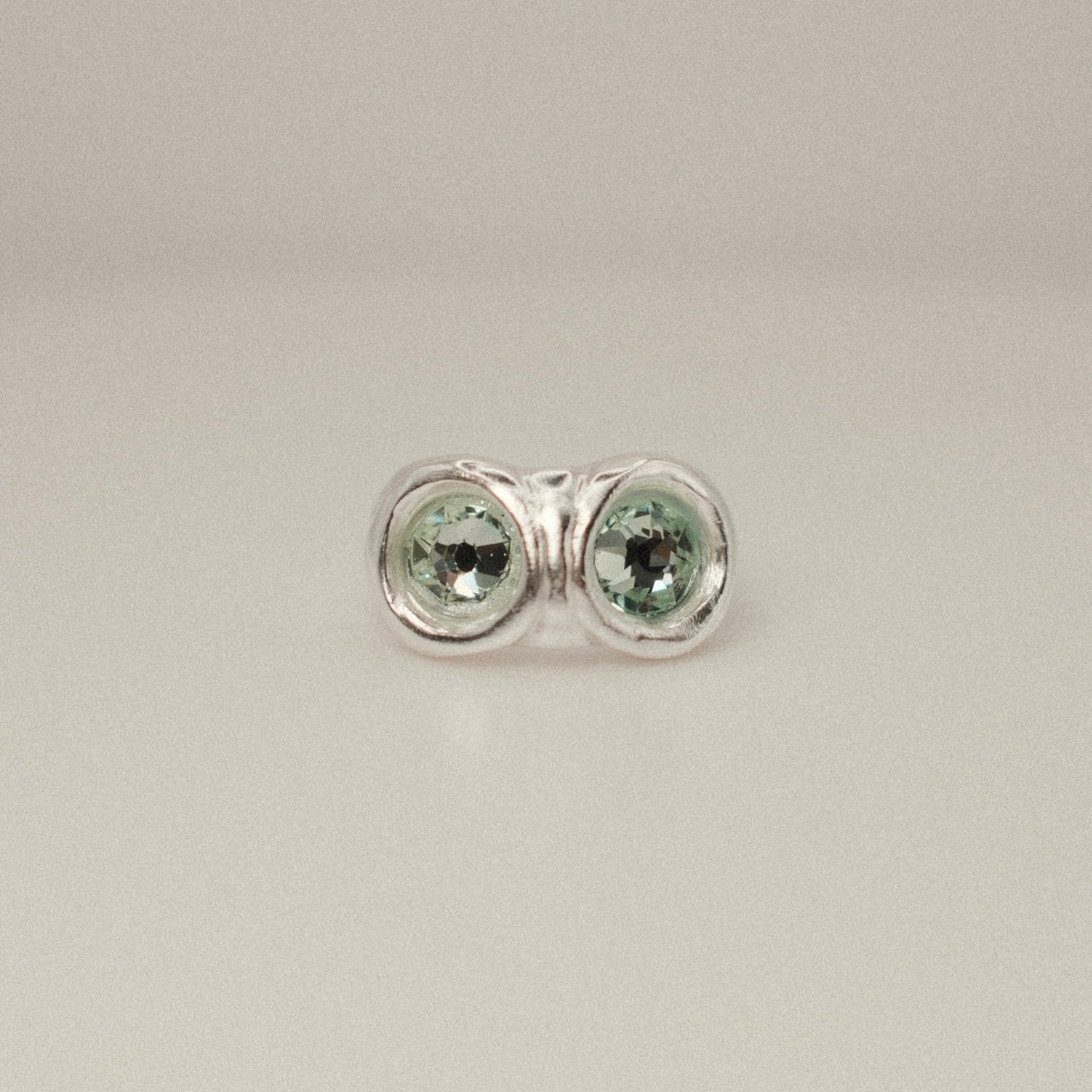 Anillo de plata 925 con doble piedra de Swarovski de 7 mm, acabado rústico.